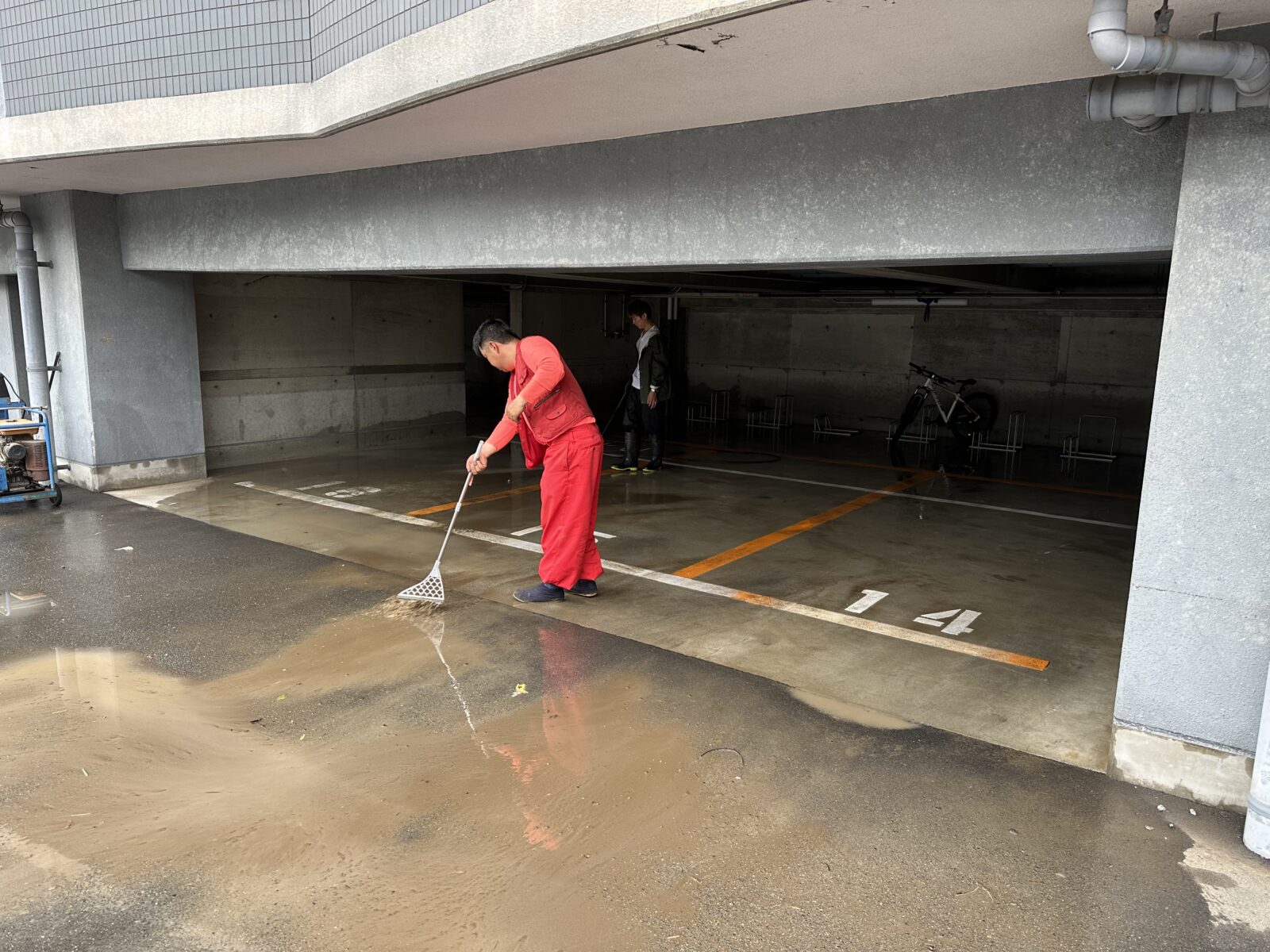 大雨で川が逆流して駐車場が水没しました