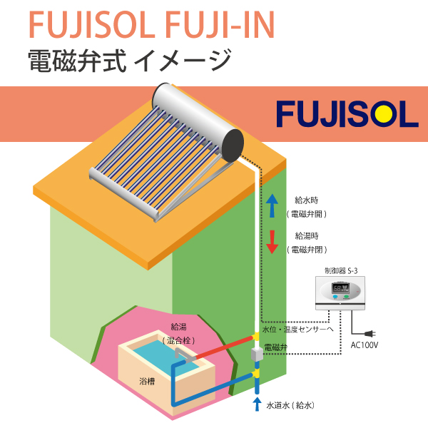 まず、今までは、水を送るパイプとお湯を取り出すパイプと、2 本の配管が必要でしたが、電磁弁により、パイプが 1 本だけで済むようになりました。このことは、導入時に工事の負担が軽くなることを意味します。